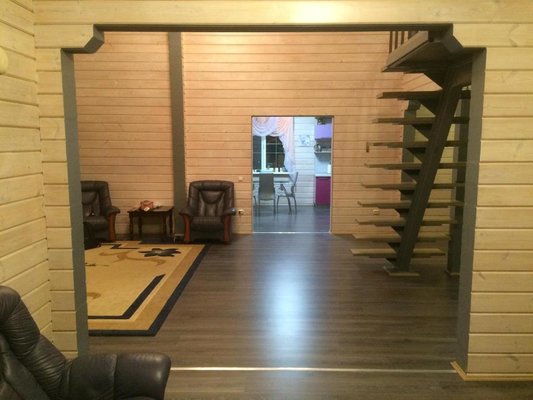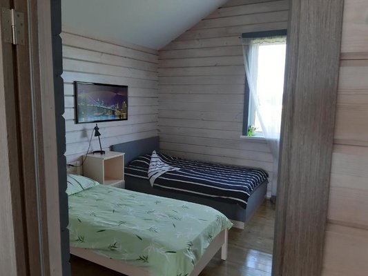В доме 3 спальных комнаты, холл, каминный зал, кухня. Своя артезианская скважина. До озера 100 метров с выходом в Ладогу.