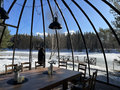 Купол рассчитан на компании до 18 человек и функционирует круглый год: в холодное время отапливается дровяной печью и инфракрасными обогревателями, что позволяет с комфортом провести вечер в лесу, даже при карельском морозе.