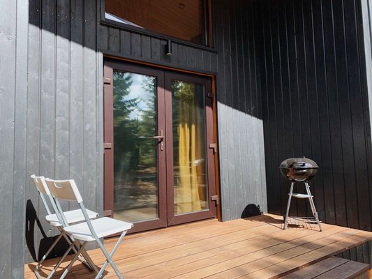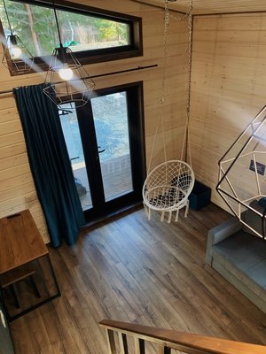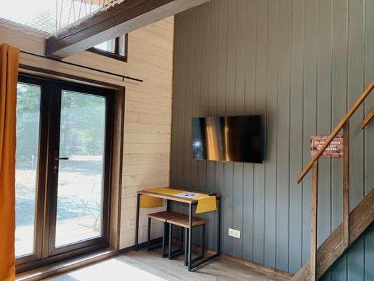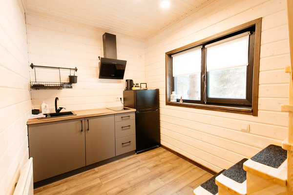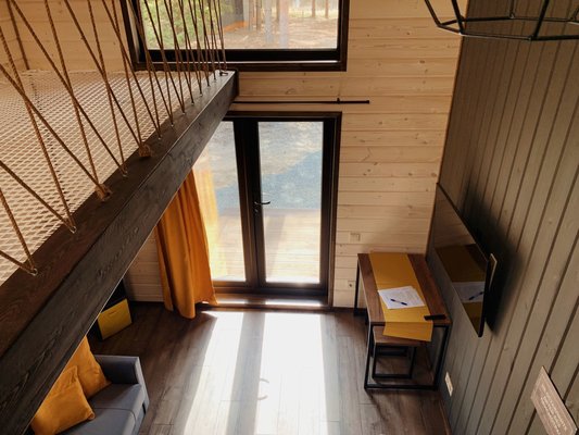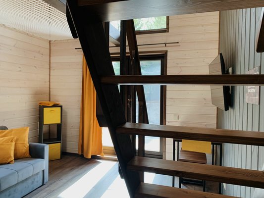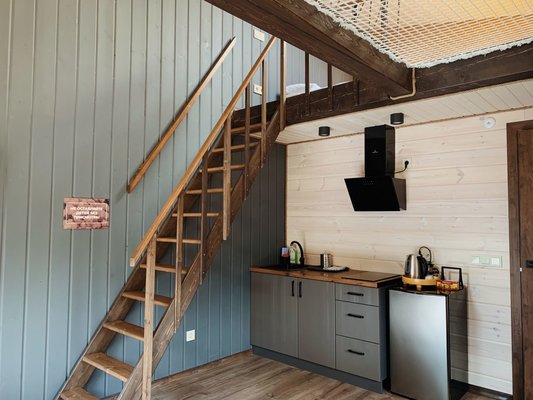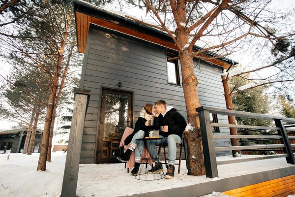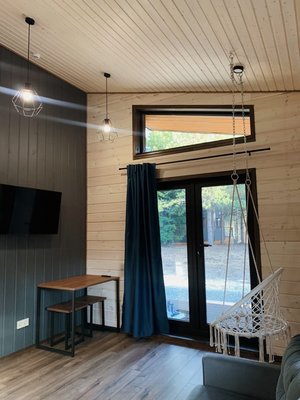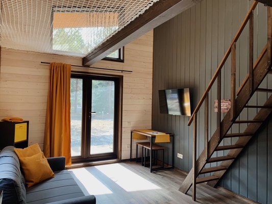 Что внутри? Стильное пространство с панорамой на лес и реку, которое трансформируется под ваш запрос. Необходимая мебель на нужное количество человек, посуда.
