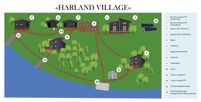 В Harland Village вы сможете наслаждаться экологически чистым отдыхом в уютных современных коттеджах на берегу реки, расположенными в 25 километрах от Петрозаводска.