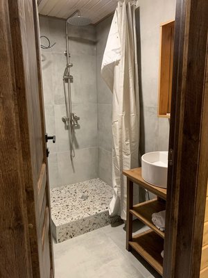 Баня на дровах, большое окно в парной, терраса, выход к реке, есть небольшая зона отдыха (гостиная). Каждому гостю предоставляется полотенце, шапочки.