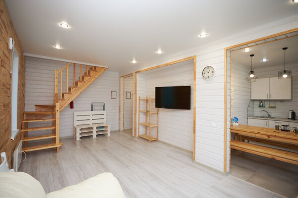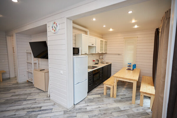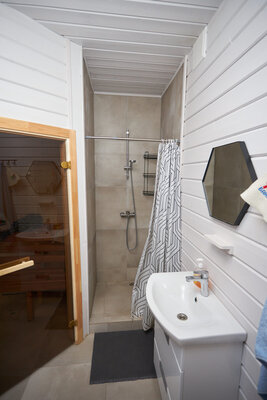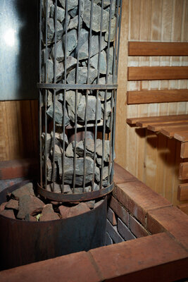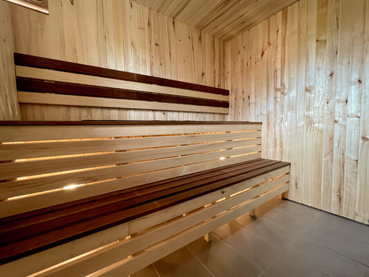 Большие дома оборудованы саунами. Удобные и просторные сауны, где вы можете сами регулировать температуру. Так же есть все необходимое для сауны — веники, шапочки, полотенца.