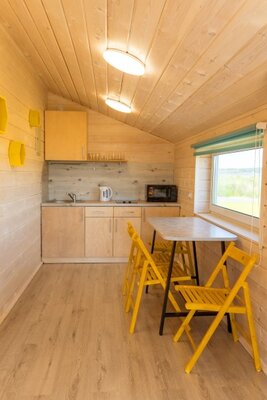 База отдыха оборудована тремя детскими площадками. Две из них находятся на большой территории и одна на малой. На площадках есть горки, качели, батуты — все, что нужно детям для весёлого отдыха! Детские площадки хорошо видно из окон домиков, так что дети всегда будут на виду у родителей.
