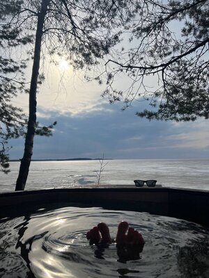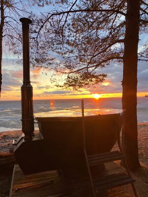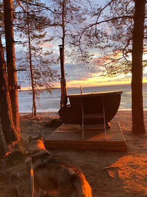 Бани расположены на самом берегу Сямозеро. Большая баня рассчитана на компании до 10 человек.