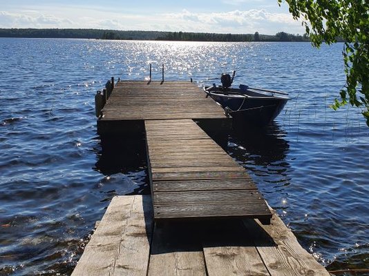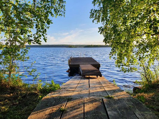 Жемчужиной участка можно считать собственный выход к воде. Там оборудован пирс для швартовки судов, глубина дна у края – чуть больше одного метра. С пирса можно купаться или вести неспешную рыбалку. А какое удовольствие утром пить на нем кофе, или в прохладный день нырнуть в озеро после сауны! Вы будете рады узнать, что вам будет предоставлена моторная лодка бесплатно. Это отличная возможность отправиться на рыбалку, на прогулку по близлежащим островам или на экскурсию на остров Кижи.
