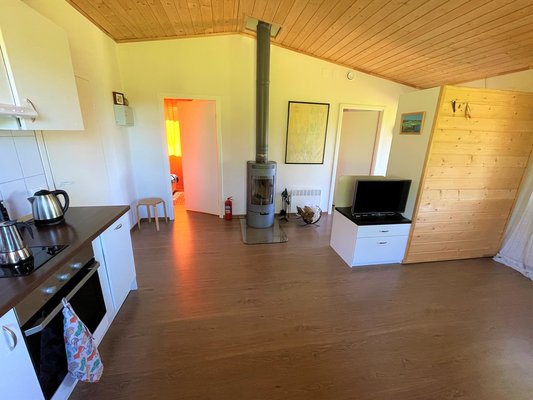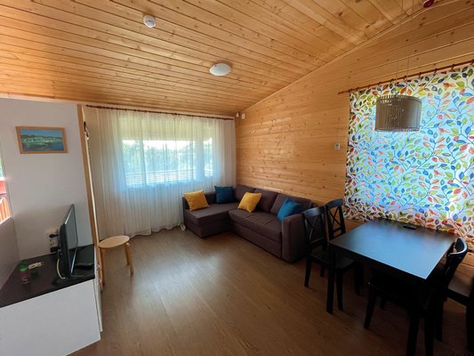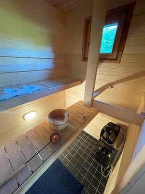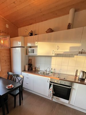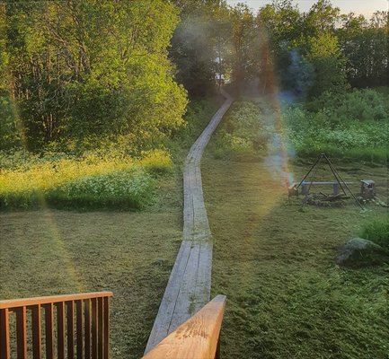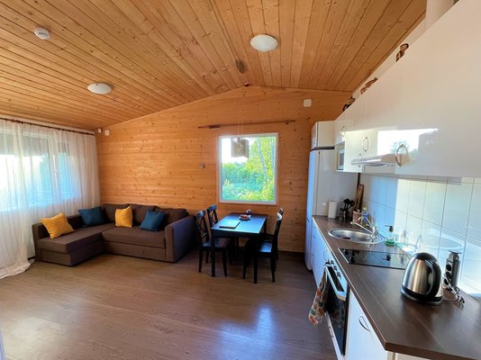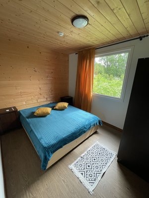 Гостевой дом был построен несколько лет назад с использованием экологически чистых материалов и с упором на комфорт и гигиеничность для посетителей. Принципы при создании этого места были вдохновлены финским архитектором и уважением к окружающей среде. В жилище имеются две спальни, место для отдыха с телевизором, объединенная кухня и столовая, уютный камин, ванная комната с душевой кабиной и стиральной машиной, а также возможность посещения сауны. Интегрированные шкафы предусмотрены для хранения личных вещей, а на большой террасе можно наслаждаться садовой мебелью и великолепным закатом. Из окон дома можно любоваться видом на деревья и озеро, что придает ощущение уюта и комфорта. Рядом с домом расположен большой участок земли, где можно насладиться уединением и провести время на мангальной зоне. В этом месте можно приготовить различные блюда на открытом огне, включая уху, плов и копчености, благодаря наличию кострища, мангала, казана, щепы и постоянно пополняющегося запаса дров.