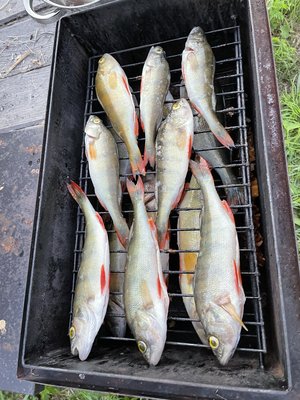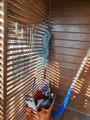 Набор необходимого оборудования для занятия рыбной ловлей включает в себя базовые снасти, две удочки, сачок, лопату для копания червей, пшено и безмен (для взвешивания улова).