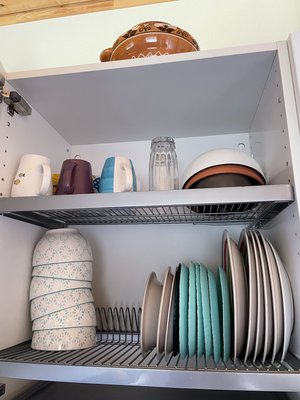 В наличии имеется полный комплект кухонного оборудования, включающий плиту, духовку, микроволновую печь, электрический чайник, холодильник, посудомоечную машину и встроенный фильтр для очистки воды.