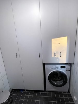 В данном помещении доступны удобства, такие как душевая кабина, санитарный узел, устройство для подогрева воды, система теплого пола и возможность стирки белья.