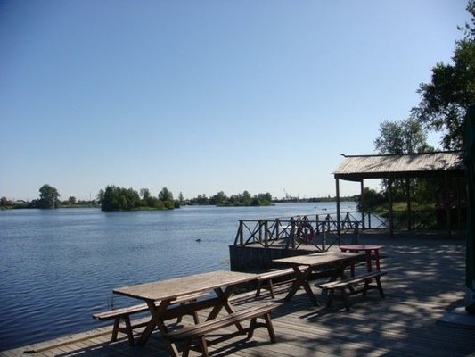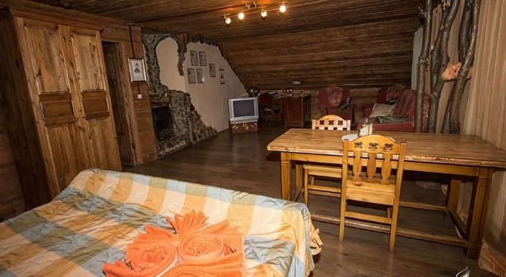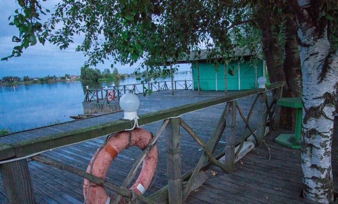 На первом этаже трехэтажного здания расположен уютный ресторан с камином, на втором и третьем этажах – пять гостиничных номеров, также имеется отдельный банкетный зал с террасой и видом на реку.