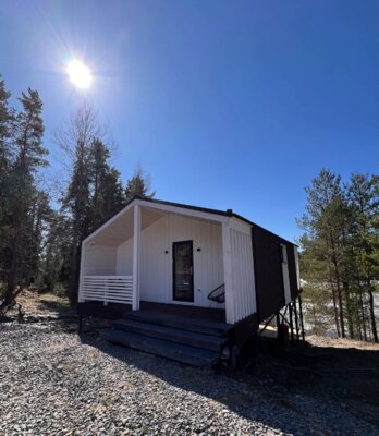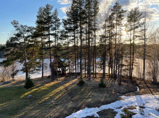 Аренда лодок с мотором в Карелии. В комплект аренды входит лодка с мотором до 5 л.с., спасательные жилеты и весла. Удобный спуск к воде в тихой лагуне Ладожских шхер.