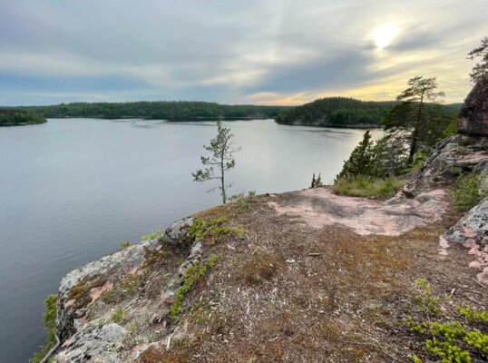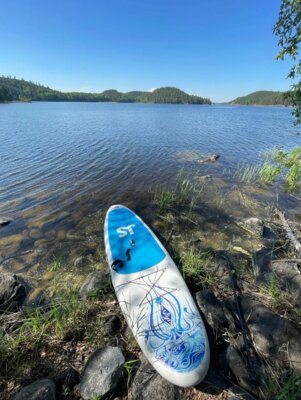 В комплект входит спасательный жилет, лиш и весло. Удобный спуск к воде в тихой лагуне Ладожских шхер — Вам всё покажут и расскажут.