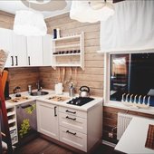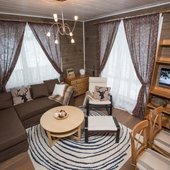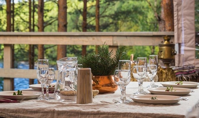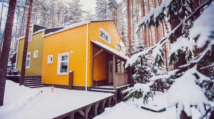 Коттеджи полностью укомплектованы для комфортного проживания. А в эко-отеле можно разместиться в уютных двухместных номерах или просторных апартаментах (вместительностью до 6 человек).