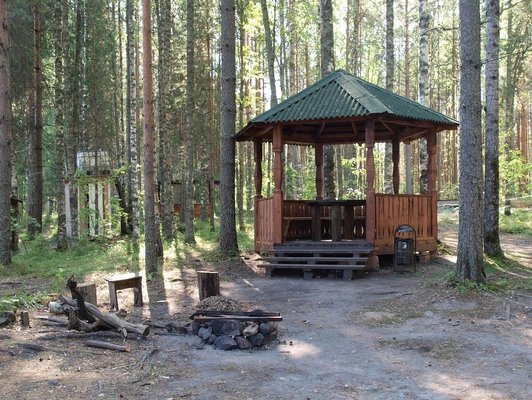 Для гостей базы отдыха предлагается возможность аренды закрытой беседки, оборудованной кострищем и мангалом. Вместимость беседки составляет от десяти до семнадцати человек.