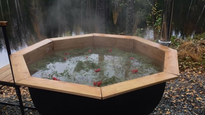 Баня на берегу озера с дровяной печью. Стоимость указана за 3 часа.