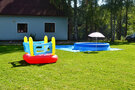 Мы позаботились и о маленьких гостях: для семей с детьми доступны детская кроватка, стульчик для кормления, ванночка, летний бассейн (3 м), надувной батут, игровой домик и качели.
