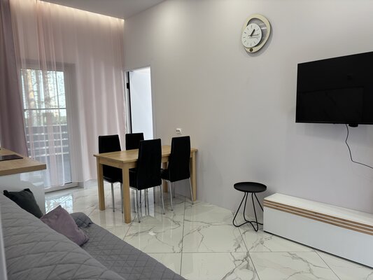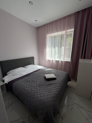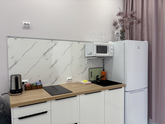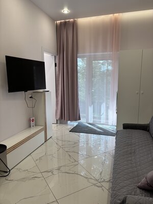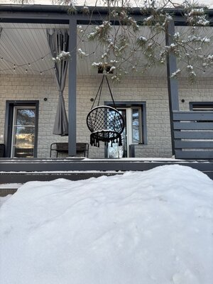 К вашим услугам комфортабельный дом с гостиной-кухней (полностью оборудованной: холодильник, индукционная плита, микроволновка, посуда), смарт-ТВ с голосовым помощником Алисой, отдельной спальней, санузлом с душем, а также террасой и мангалом. За дополнительную плату предлагается традиционная баня на дровах с обливным ведром и банный чан.