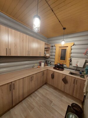 Новая шикарная баня из цилиндрического бревна на дровах рассчитана на 4 человека.
