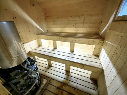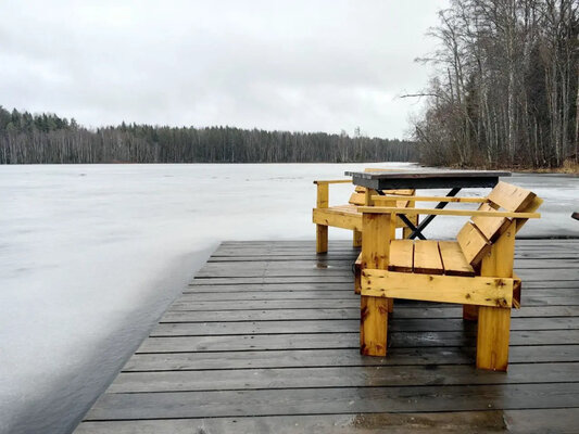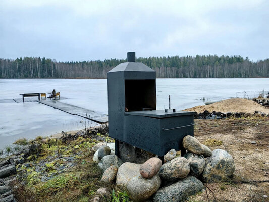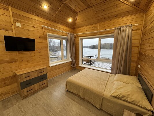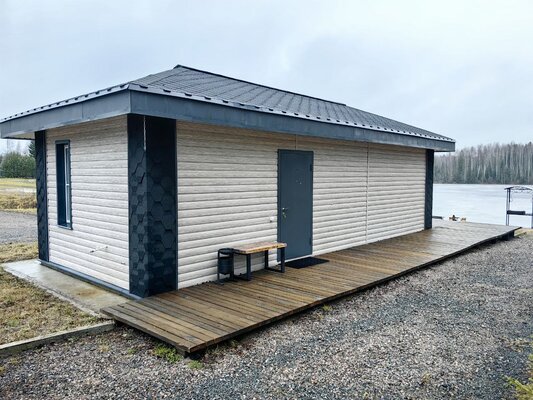 На берегу озера стоит русская баня на дровах — идеальное место для расслабления. После парения гости могут освежиться в кристально чистых водах озера.