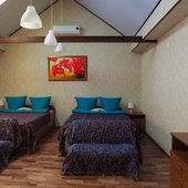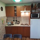Дом расположен в тихом районе индивидуальной застройки в то же время до центра города можно пешком дойти за 20 минут. В доме 4 комнаты и каждая выполнена в оригинальном стиле. Имеется полностью оборудованная кухня, где можно приготовить еду. Для семей с маленькими детьми в наличии детский стул для кормления и кровать манеж.