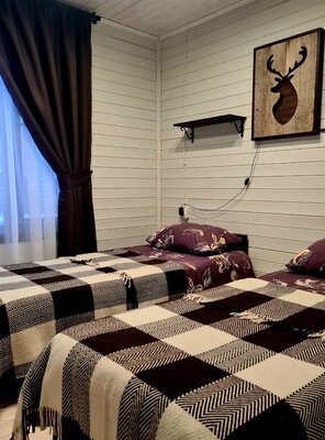 К вашим услугам 2 уютных домика, каждый с двумя спальнями, полностью оборудованной ванной комнатой и просторной гостиной с мини-кухней (плита, холодильник, микроволновка, чайник, посуда). Наслаждайтесь ароматным шашлыком в специально оборудованной зоне для барбекю с мангалом и уличной мебелью. Для удобства гостей предусмотрена бесплатная парковка и детская площадка. Каждый домик имеет свой приватный двор, где вы можете насладиться тишиной и красотой карельской природы.