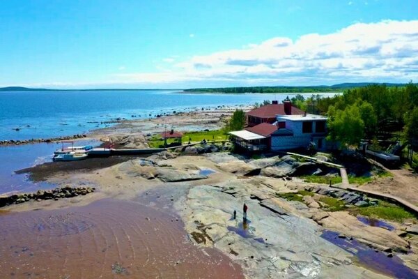На высоком скалистом берегу Белого моря вас ждет уютное кафе, где вы сможете насладиться изысканными блюдами поморской кухни с потрясающим видом на море.