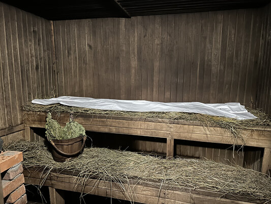 Баня построена из бревен натуральной сосны и по традиции на самом берегу. К вашим услугам: горячий ароматный пар, можжевеловые и березовые веники, уличная купель, горячие травяные чаи и ягодные морсы.