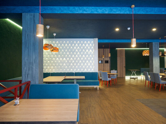 Кафе с панорамными окнами и большой верандой расположено на высоком скалистом берегу Белого моря. Здесь, в любую погоду, можно наслаждаться захватывающими картинами морского простора. Сочетание дерева и камня, огонь в камине и уникальный декор, выполненный руками поморских мастеров, создают особенную атмосферу, в которой чувствуется уют и тепло.