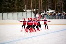 Профессиональная открытая хоккейная площадка с пластиковыми бортами по периметру и безопасным стеклянным ограждением для игры в хоккей и массового катания на коньках.