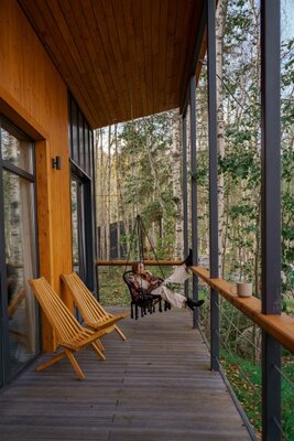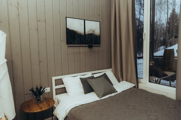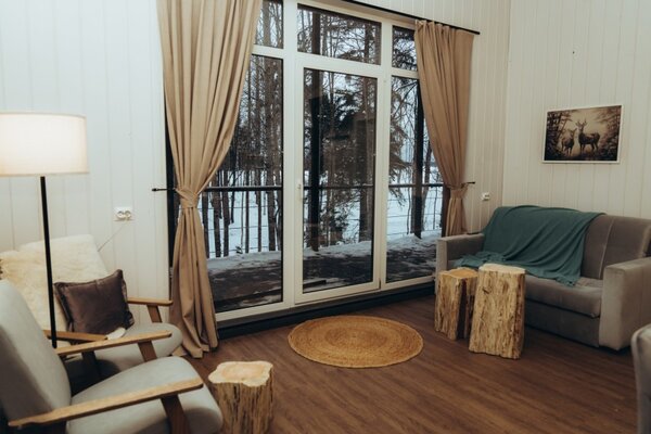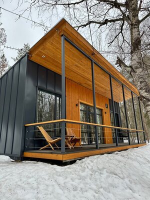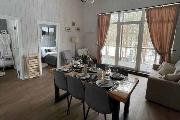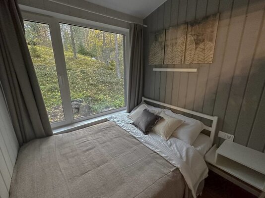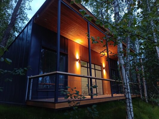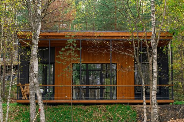 Эко-отель предлагает своим гостям шесть уютных и стильных домов, каждый из которых оснащен панорамными окнами и просторной террасой с захватывающим видом на озеро. Для дополнительного комфорта и релаксации в каждом доме имеется собственная электросауна.