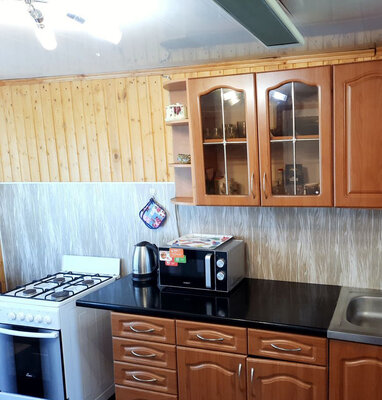 Дом полностью оборудован для комфортного проживания. На уютной кухне вы найдете газовую плиту, холодильник и всю необходимую посуду. К вашим услугам телевизор, санузел и душевая кабина. Создать тепло и уют помогут как печное, так и электрическое отопление. На первом этаже расположена гостиная с камином, объединенная со спальной зоной и кухней. Второй этаж предлагает две отдельные спальни для полноценного отдыха.
