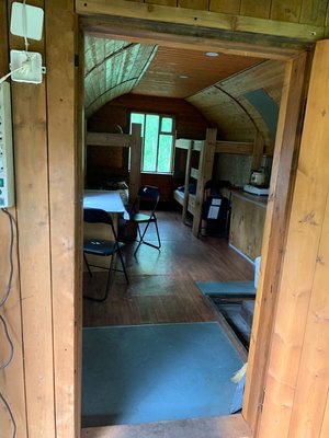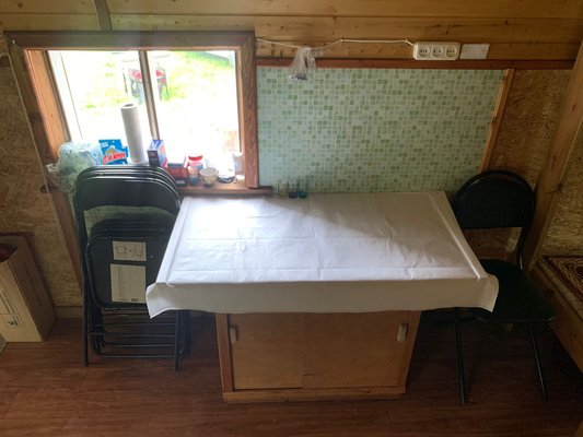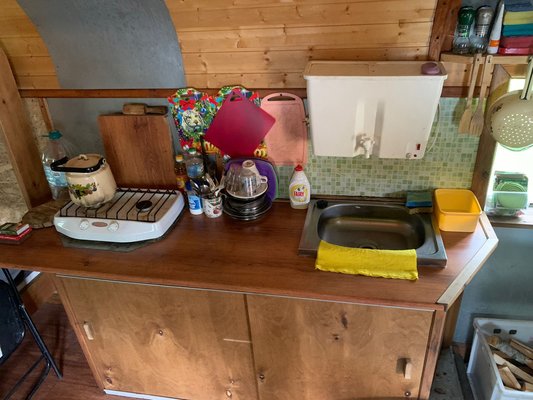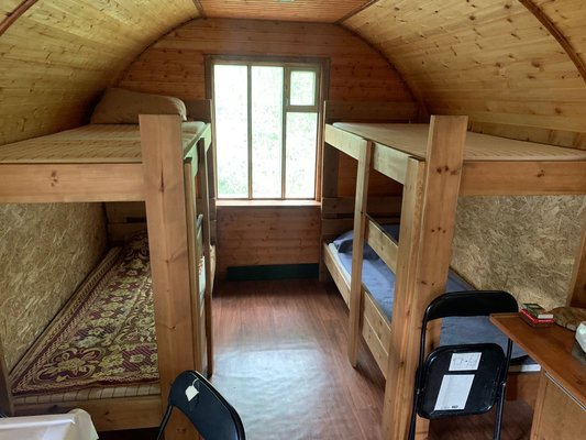 Здесь можно забронировать бюджетный 4-местный домик с двухэтажными кроватями и мини-кухней.