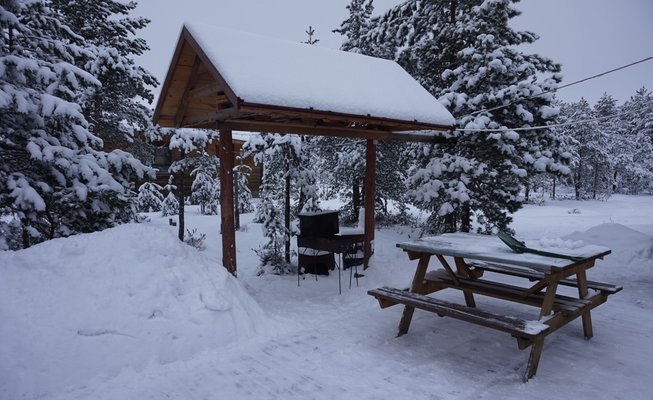 Расположение комплекса удачное – вокруг лес, тишина, никакого шума от дороги. В домике тоже все было хорошо. Мебель не слишком старая, не поломанная, кровать не скрипит. Засыпать в таком месте – одно удовольствие.