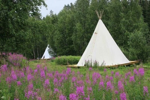 Туристы могут разместиться в палатках «типи» или выбрать бунгало. Повсюду удобные мягкие кровати, дизайнерские интерьеры, перекликающиеся с популярным скандинавским хюгге, и газовые конвекторы для отопления. Дома имеют собственный санузел с умывальником и биотуалетом, крытую террасу. Освещение в «типи» и бунгало на аккумуляторах, розеток нет.