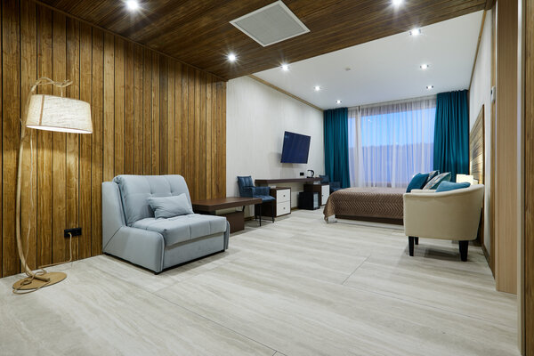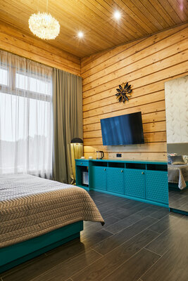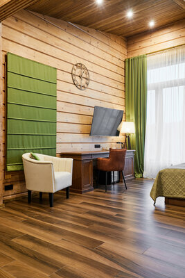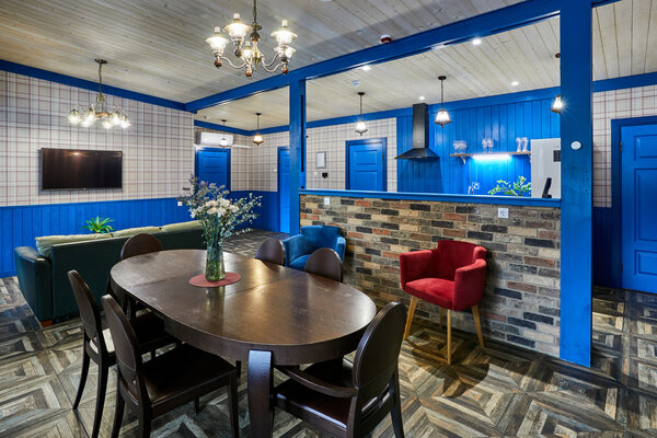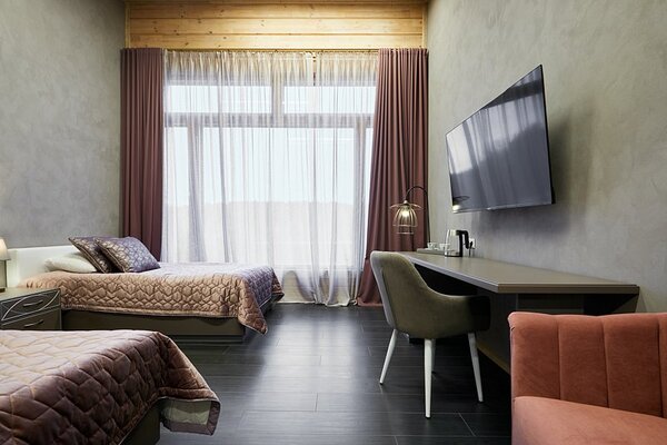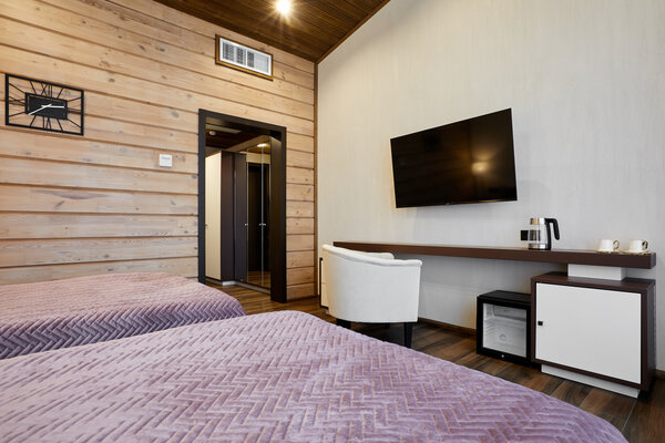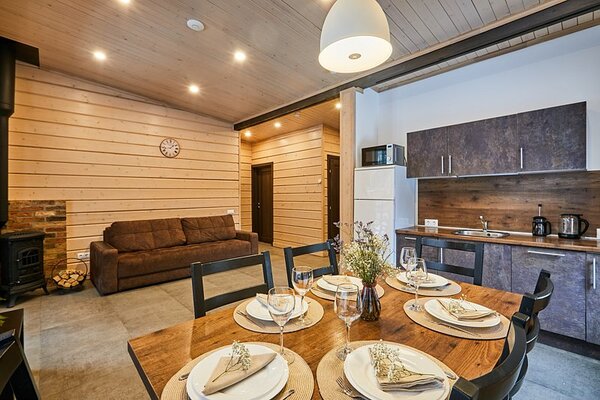 К услугам гостей — элегантные номера в европейском стиле, просторные коттеджи для семей и компаний (от 2 до 10 человек), а также эксклюзивные дома с английским интерьером, идеально подходящие для больших групп до 12 человек.