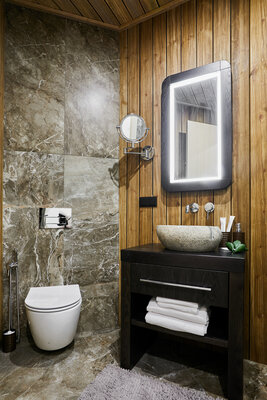 Для истинного расслабления на территории отеля ждет подлинная русская баня, построенная из уникального сухостоя Кело. Здесь можно не только попариться, но и полностью снять напряжение.