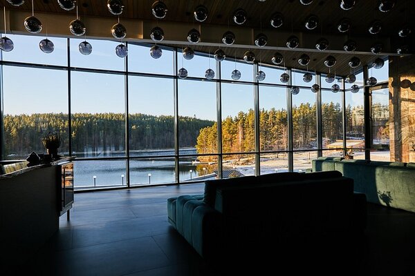 Из панорамных окон бассейна открывается живописный вид на Ладожское озеро.