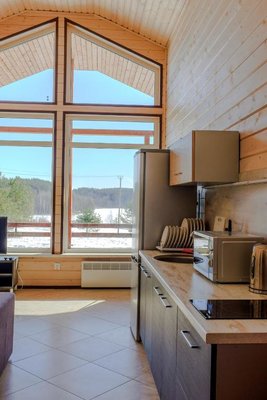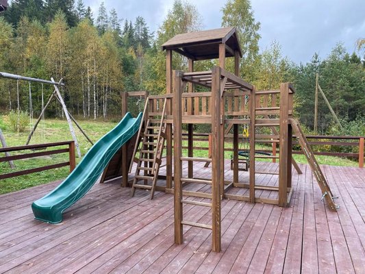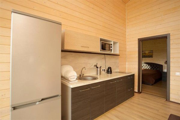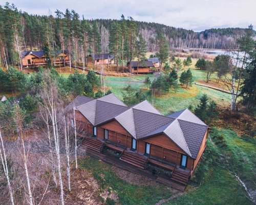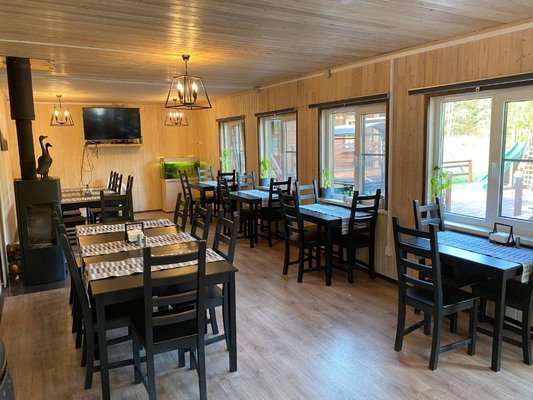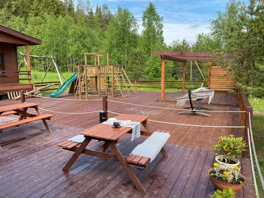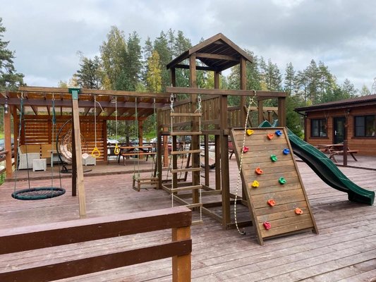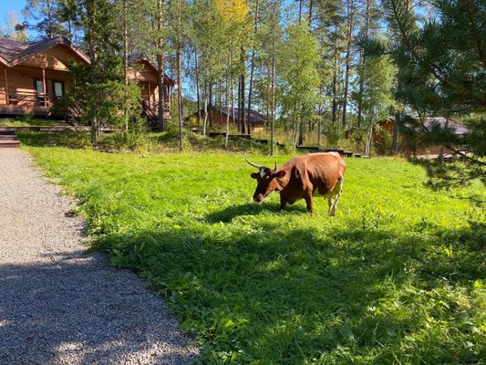 Здесь очень удобно снимать дом для большой компании, а для семьи из трех - четырех человек отлично подойдет стандартный номер. На территории есть ферма, домашние животные красивые и ухоженные, видно, что за ними следят. На территории имеется детская площадка, на ней надежные качели, наш ребенок с большим удовольствием катался на них. В ресторане вкусно готовят, используют местную сельскохозяйственную продукцию.