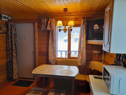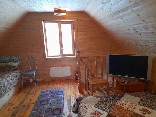 В домиках, рассчитанных на 4-6 человек, есть все необходимое для комфортного проживания. В стоимость входят беседка и мангал. Баня арендуется за дополнительную плату при выборе варианта проживания «Дом на хуторе».