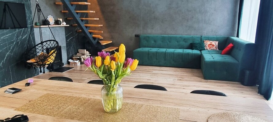 Этот дизайнерский дом, созданный с любовью и вниманием к деталям, оснащен всем необходимым для полноценного отпуска. К вашим услугам просторная терраса, уютный балкон, 4 комнаты и 2 санузла. Изюминка второго этажа — стильная ванная комната с панорамным окном и эффектной красной ванной. Современная кухня полностью оборудована бытовой техникой и всей необходимой посудой, а в гостиной вас ждет камин и вместительная обеденная зона на 10 человек.