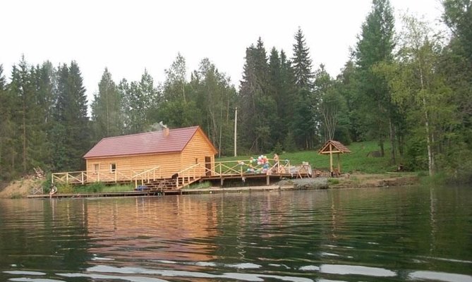 Домик находится в 10 минутах езды от горного парка Рускеала. В домике можно проживать с маленькой собачкой. Домики находиться на берегу маленького красивого озера, их можно подсвечивать гирляндами и огоньками. Есть веранда с большим обеденным столом. На кухне есть всё необходимое для готовки. Но к ближайшему магазину 1,5 км (еду лучше привозить с собой – холодильник вместительный).