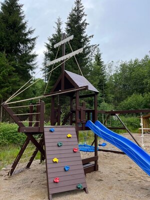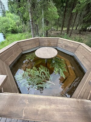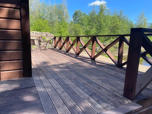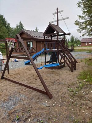 На благоустроенной территории предусмотрена парковка, зона для мангала, живописный пруд и современная детская площадка. Особая изюминка — большой банный чан под открытым небом с заранее подготовленным запасом дров для незабываемых моментов релакса.