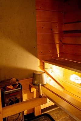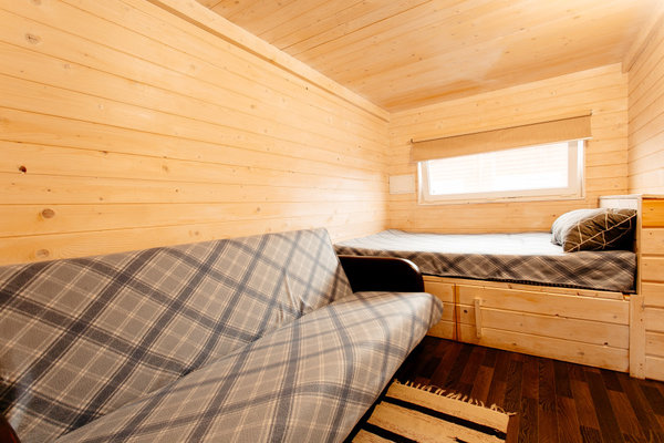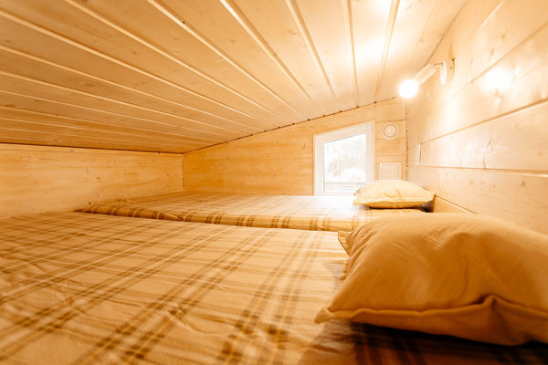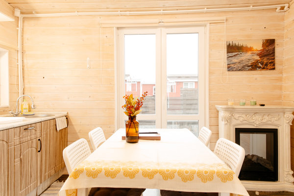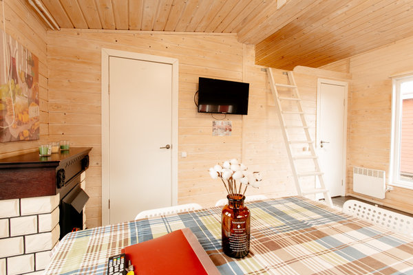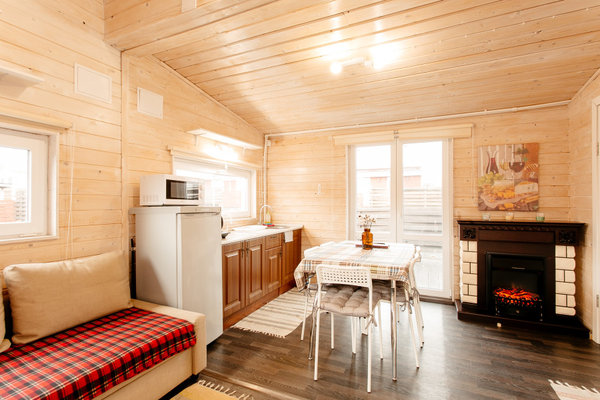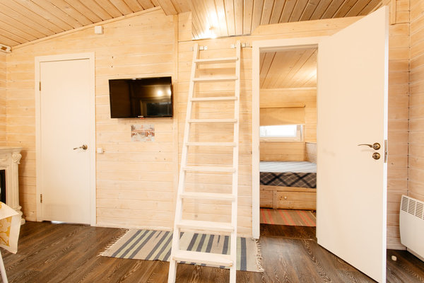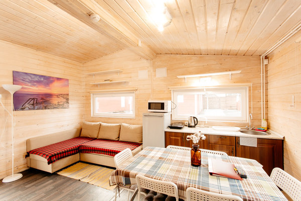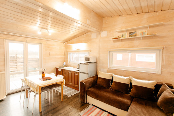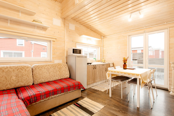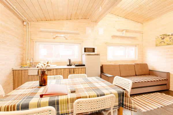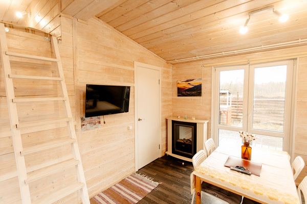 Некоторые из домов оснащены сауной, а другие предлагают все удобства без сауны. В каждом доме есть полностью оборудованная кухня с плитой, микроволновкой, чайником, холодильником и посудой, а также уютная гостиная с камином, диваном, столом и телевизором. В каждом доме есть отдельный санузел с феном, душем, туалетом, раковиной и необходимыми гигиеническими принадлежностями.
