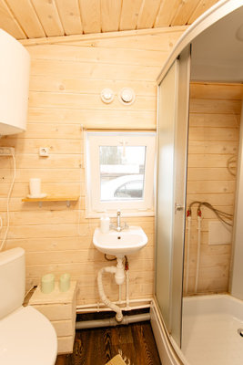 Бронируя домик, Вы получаете парковочное место прямо у домика. В холодное время у Вас есть возможность прогреть автомобиль, используя наружную розетку.