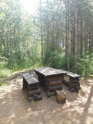 Место под кемпинг. Ухоженная зона, место для костра, мангальная зона, стол, скамейки, туалет «деревенского типа».