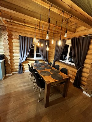 В этих уютных бревенчатых домах вас ждут удобные кровати, уютное освещение, современное кухонное оборудование, ванные комнаты и зоны для отдыха.