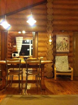 Поездом до ж/д вокзала г. Петрозаводск, далее на автобусе №523Э до остановки «Улица Карла Либкнехта», далее на автобусе №1 двигаться до остановки «Поселок Пудожский», далее пешком 1 км до коттеджа