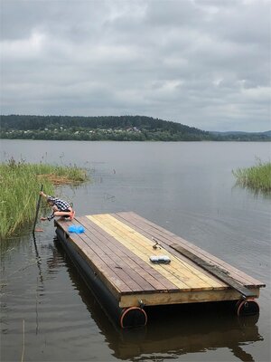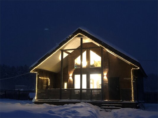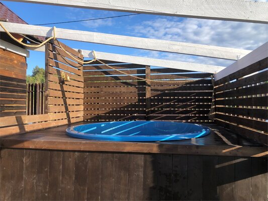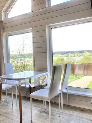 На первом этаже гостевого дома есть большая уличная терраса площадью 20 квадратных метров, кухня-гостиная площадью 23 квадратных метров и спальня с двуспальной кроватью. Гости могут насладиться финской сауной. На втором этаже есть зона для отдыха с библиотекой, диваном и двуспальной кроватью. Wi-Fi и смарт-ТВ с 290 спутниковыми каналами обеспечат вас связью и развлечениями. Для детей есть настольные игры и книги. На территории есть мангальная зона и качели.