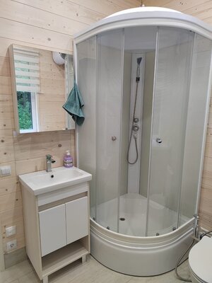 Этот новый и современный дом общей площадью 48 квадратных метров предлагает все удобства для комфортного пребывания гостей. Внутри есть все необходимое для приятного проживания.