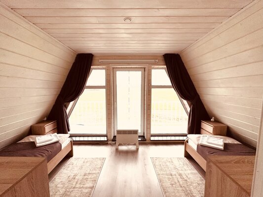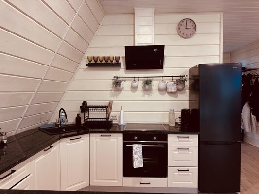 Наш трёхэтажный дом вмещает до 12 человек и предлагает все удобства для комфортного отдыха: ортопедические матрасы, качественное постельное бельё и полотенца, горячую воду (бойлер 200л), бесплатный Wi-Fi и даже детскую кроватку и стульчик для кормления (по запросу). Утюг и гладильная доска также в вашем распоряжении.